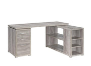 This alluring L-shaped office desk offers the stylish workspace needed to hit any deadline. It features open shelves and three drawers as well as a built-in filing cabinet. It's expertly crafted with particle board, MDF, and engineered veneer that's provides reliability and durability. The L-shaped desk top accommodates widescreen monitors and a lamp as well as a set of dictionaries and research books. It also has a reversible set-up to conveniently match whatever office design you have.